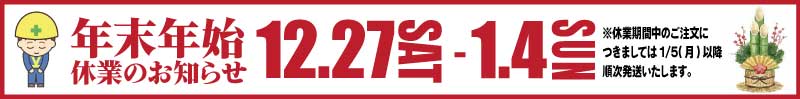 2025年12月27日(土)~2026年1月4日(日) 休業とさせていただきます。