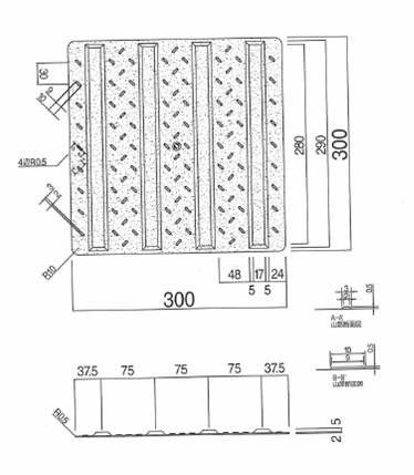 ●特徴屋外に適する合成ゴムにより成形したもので、製造段階において裏面に無溶剤性の特殊なゴム系粘着剤を感圧処理した製品です。使用にあたっては専用のプライマー剤で仕上げ床材面を処理して直接に貼着するタイプです。施工が簡単で耐候性、耐磨耗性、耐熱性になどに優れています。全面を粗面仕上げとチェッカー加工による防滑性を考慮し、また四隅を面取り加工して剥離防止を考慮した屋外用の製品です。型番:SM300-JN