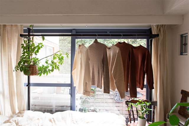 ※発送後キャンセル、及びお客様ご都合の返品や返金には対応出来かねますのでご注意ください。 ※北海道・沖縄県・離島への配送を指定されたご注文においては、割増運賃(都度お見積)が発生する場合がございます。 HOME建築金物(設備・エクステリア) その他(エクステリア) 森田アルミ工業 窓枠物干し FRAMES フレームス 価格: ¥26,400 (税込) [ポイント還元 264ポイント~] 販売期間: 数量: 台 在庫 ○ 返品についての詳細はこちら レビューはありません メーカー直送のため代引きでの決済は不可となります。銀行振り込み・コンビニ・クレジット・後払い決済でご購入下さい。 森田アルミ工業 窓枠物干し FRAMES フレームス MKA11-BK 使っている時のことも、使っていない時のことも。服を洗って干す、 洗濯という家事は人々の生活に欠かせません。 そんな日常に寄り添いながらも、豊かな生活空間を保ちたい。 そんな思いを実現させる、使っている時のことも使っていない時のことも考えた物干しです。 <特徴> ●インテリアになじむ物干し 日々こなす仕事だからこそ、しっかり干せつつも、使っている時は部屋の一部であるかのような佇まいであることを目指しました。 ●窓枠と一体になって目立ちにくい 窓枠に沿って取り付けると一段とすっきり収まります。カーテンの裏に取り付ければ支柱は見えません。さらに、竿を取り外して竿掛けに収納すれば、存在感が一切なくなります。 ●竿を取り付けたままでも折りたためます。 ●折りたたんだ状態で、カーテンを閉められます。 <仕様> ●色: 黒 ●重さ:物干し竿 約0.5kg ●素材:アルミパイプ(アルマイト仕上げ) スチール(焼付塗装)・ステンレス・ASA樹脂 ●内容:突っ張り棒(左上×1、右上×1、下×2)、物干し竿(伸縮式)×1、竿掛け×1 ●耐荷重:10kg